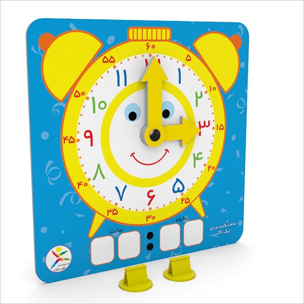این وسیله ساعتی با عقربههای ساعت شمار و دقیقه شمار است که روی یک صحفه وایتبردی قرار داده شده است. دو پایهی کوچک هم دارد که میتوان ساعت را روی آنها سوار کرد. در بخش پایین ساعت نیز محلی برای نوشتن ساعت و دقیقه وجود دارد که میتوان تناظر عددی زمان را با ماژیک وایتبردی در آن قسمت نوشت و پاک کرد. برای آموزش ساعت به دو روش میتوان از این وسیله استفاده کرد. در حالت اول با چرخاندن عقربهها از کودک میخواهیم ما به ازای عددی را در پایین بنویسد. در حالت دوم در بخش ساعت و دقیقه اعدادی را مینویسیم و از کودک میخواهیم با چرخاندن عقربهها آن زمان را نشان دهد.